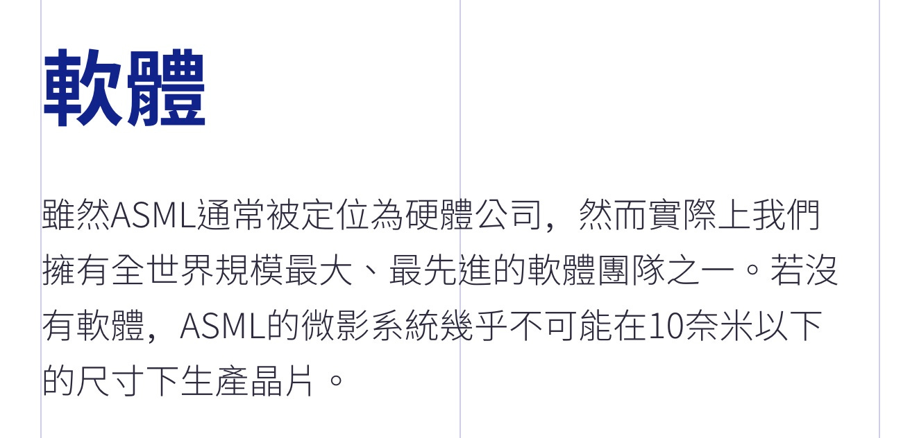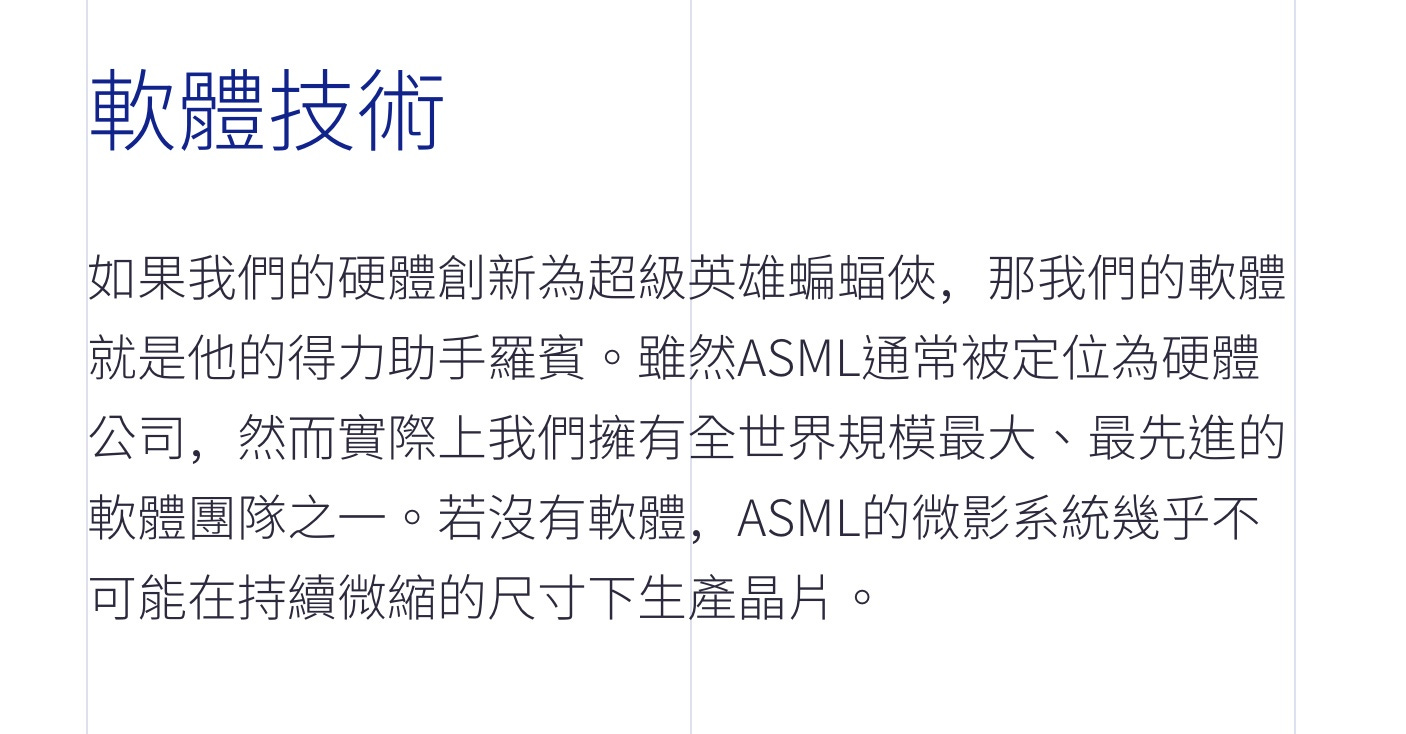 ASML網站的內容大致上是翻譯自英文版。從翻譯的角度來說,品質算是不錯、中文也流暢;但從文案的角度來說,就普遍存在著先前的「你不可不知」例子這樣,略嫌「文案化」不足的問題。