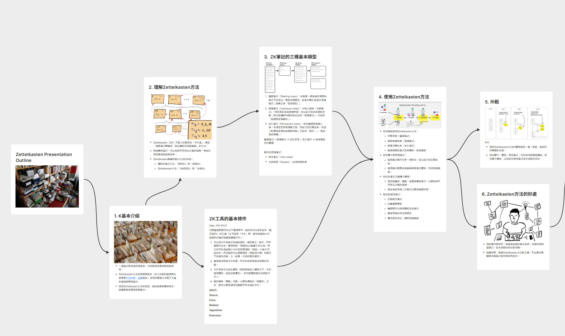 對於「從繁到簡」的寫作方式而言,ZK是非常好的工具,對於累積寫作資源(特別是我常說的「雜學運用」)會很有幫助;而現在各個平台上也已經有許多適合搭配ZK方法、價格也不貴的工具,在YouTube上也可以搜尋到許多教學影片,都可以參考。